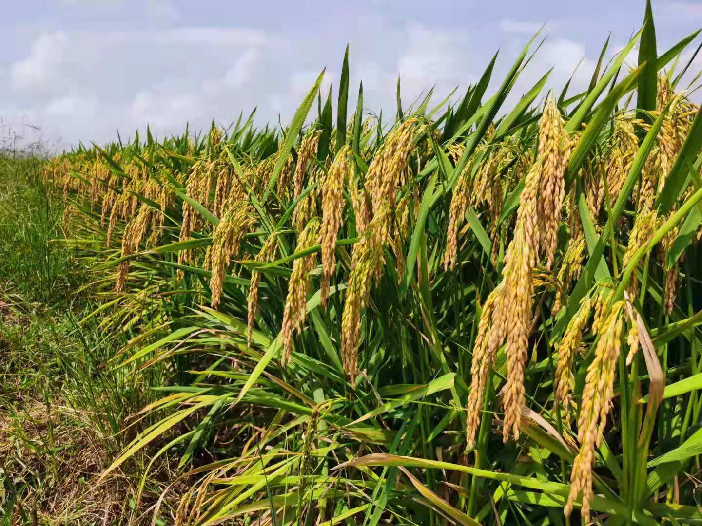 望着试验基地中植株坚挺、稻穗沉甸、谷粒饱满的水稻,前来考察的领导们十分满意,对今年的测产结果充满期待!