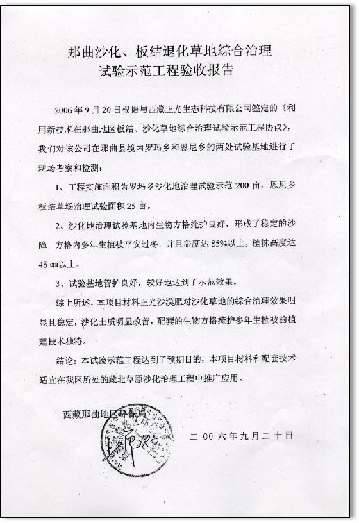 实施面积罗玛乡沙化治理200亩,恩尼乡板结草场面积25亩