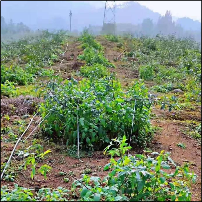 以下图中的土地之前都是种植巨桉,砍伐后用来种植花椒(众所周知,种植过巨桉树的土地几乎寸草不生,土壤情况特别差,养分严重不足)。