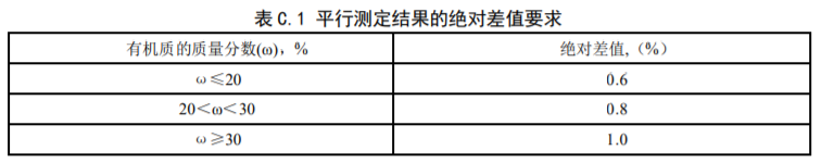 C.6.2平行测定结果的绝对差值应符合表C.1要求。