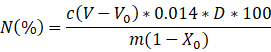 肥料的总氮含量以肥料的质量分数表示,按公式(D.1)计算,所得结果应表示至两位小数。