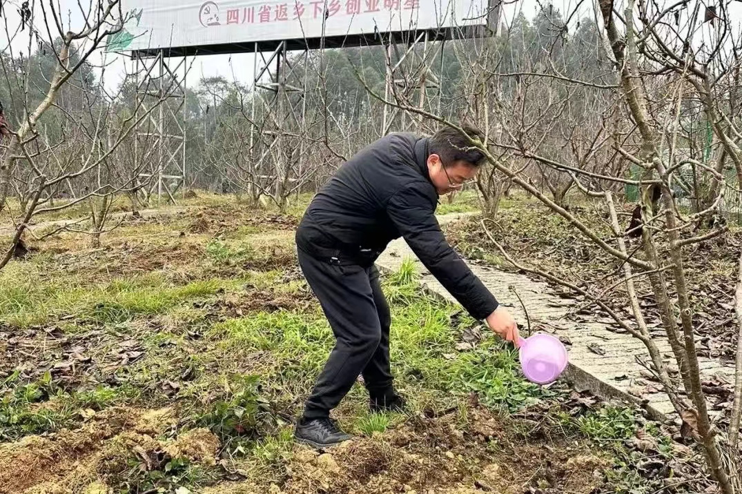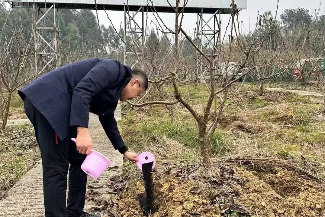 此次种植试验希望探索出一条在坚持绿色发展情况下实现增产增收的路,犍为县农业局也参与其中并提供指导。犍为县农业局农业技术推广负责人杨月清莅临现场就“如何实现增产增收、保护生态屏障、推动绿色发展”系列问题进行了沟通,并参与抛下了水晶樱桃种植试验的第一盆肥。