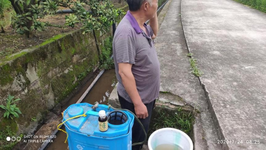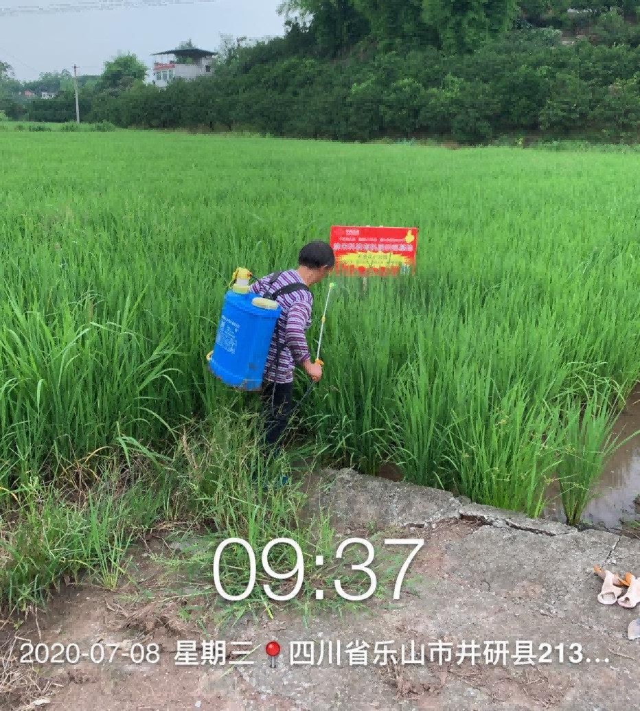 2020年7月24日进行了乐禾液2次喷施,按 1:1000 的兑水比例,用30斤的喷雾器喷施(15ml兑水30斤)现场记录如下: