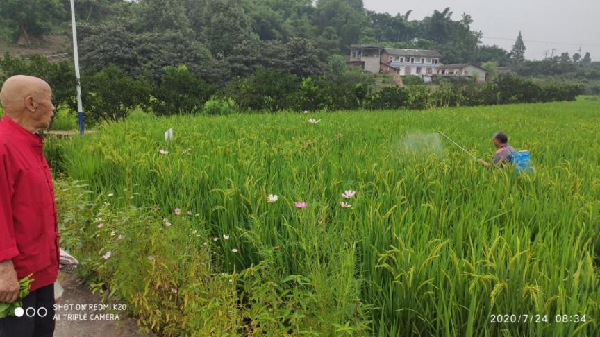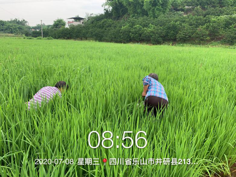 2020年7月8日,乐山中科正光农林科技有限公司与奇能米业公司在井研县集体村水稻增产推广试验。