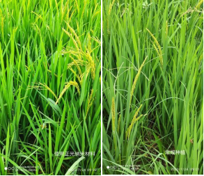图左使用中科正光纳米材料区域穗粒更多,更饱满